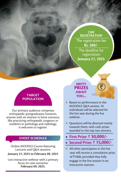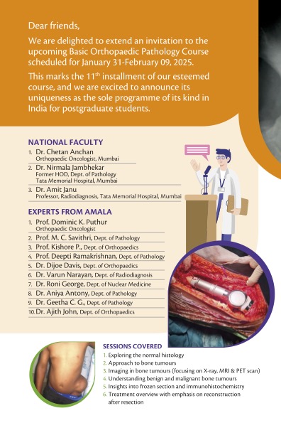 “Registration for the next online course on bone pathology and tumors is now open. I am attaching the brochure. Apart from inviting you, I kindly request you to share this invitation with your friends and juniors and encourage them to join. This time, three prominent figures in their respective fields at the national level will be joining us. This definitely makes the course more attractive and authentic. Expecting good support from all of you.”