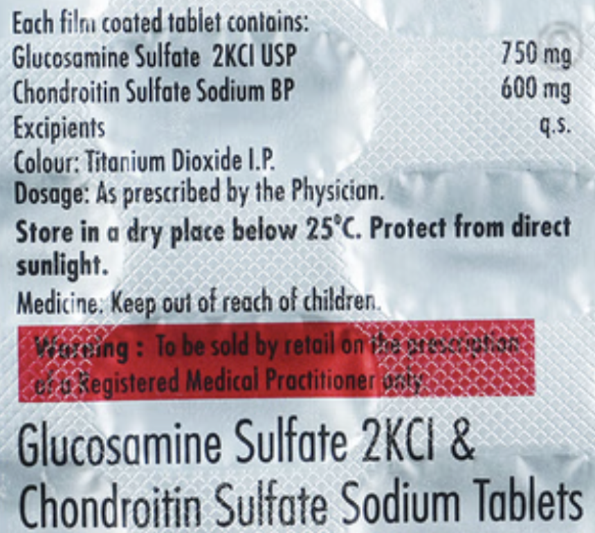 കോൺഡ്രോയിട്ടിൻ സൾഫേറ്റ് – ഉപാസ്ഥിയിലെ ഈർപ്പം നിലനിർത്താനും തകർച്ച തടയുവാനും സഹായിക്കുമെന്ന് ചിലർ പറയുന്നു,എന്നാൽ ഇതു ശാസ്ത്രീയമായി സ്ഥിരീകരിച്ചിട്ടില്ല.