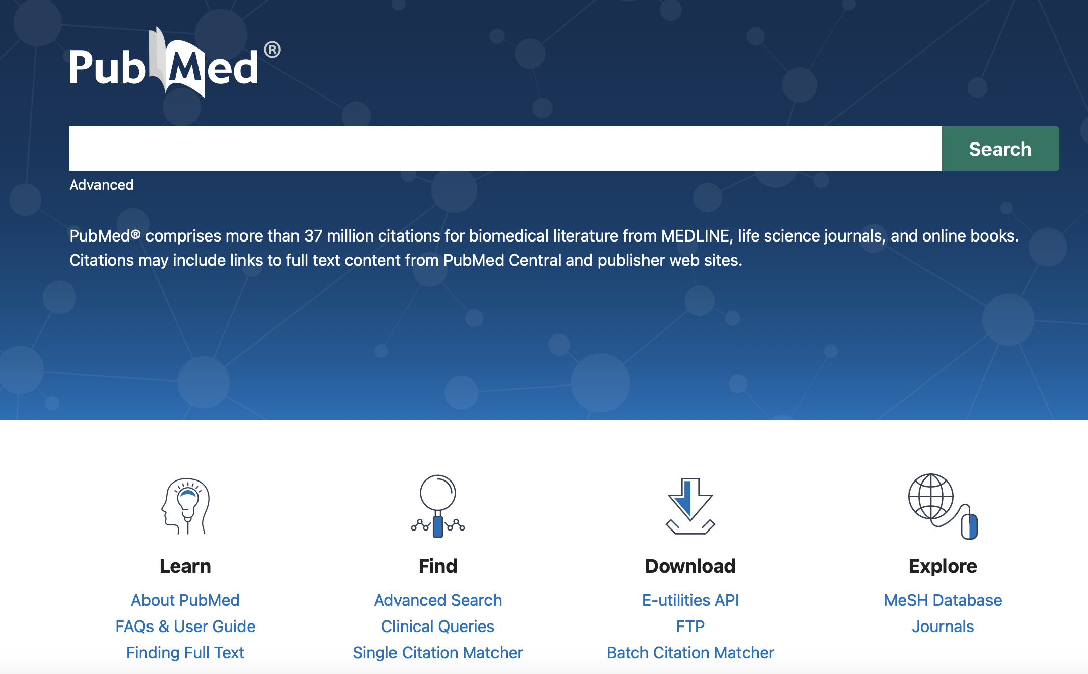 PubMed® is the first place we go for a literature search. The website greets us with a search box.