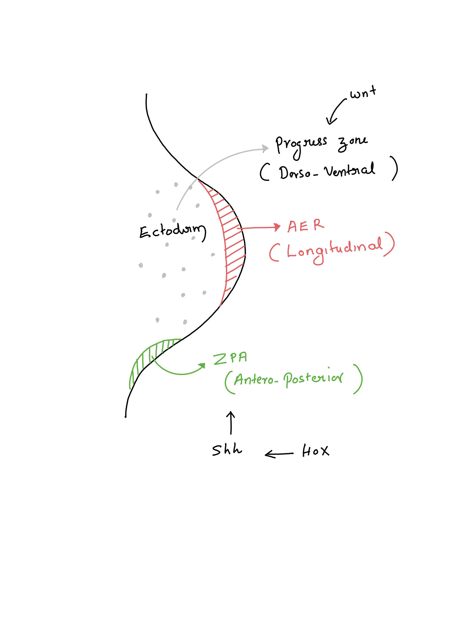 | AER (Apical Ectodermal Ridge) | Regulates proximodistal growth of the limb. | Phocomelia | Severe shortening or absence of limbs. |