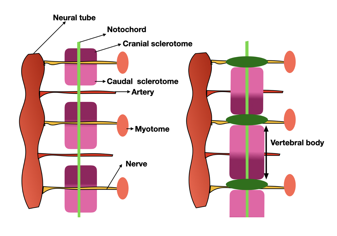 - Sclerotome: Becomes the vertebral body and annulus fibrosus.