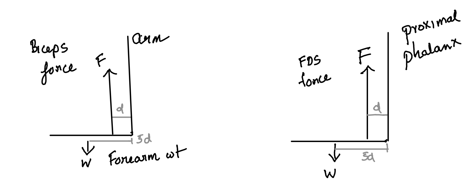 Assume a man bending forward and trying to take a brick. Here the motion segment is again acting as a type 1 lever.