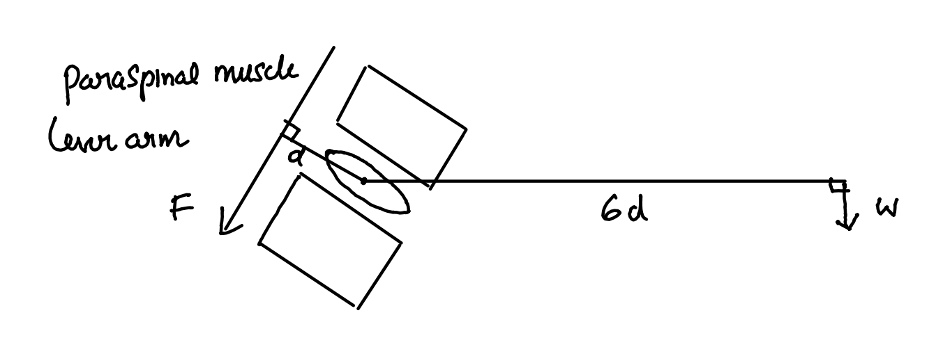 Assume a man bending forward and trying to take a brick. Here the motion segment is again acting as a type 1 lever.
