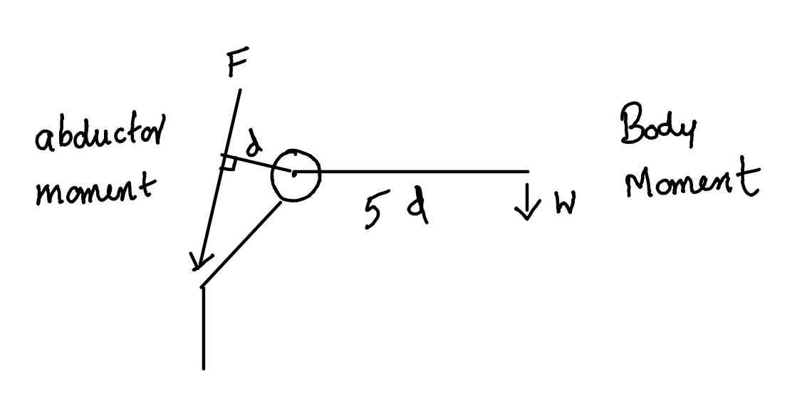 *w is generally taken as 5/6 of the body weight as the person is standing on one leg. Weight of one leg is generally taken a 1/6 body weight.